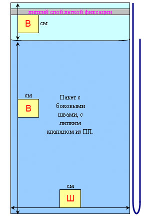 Пакет ПП 60x80+5 см с клапаном и скотчем, 35 мкм